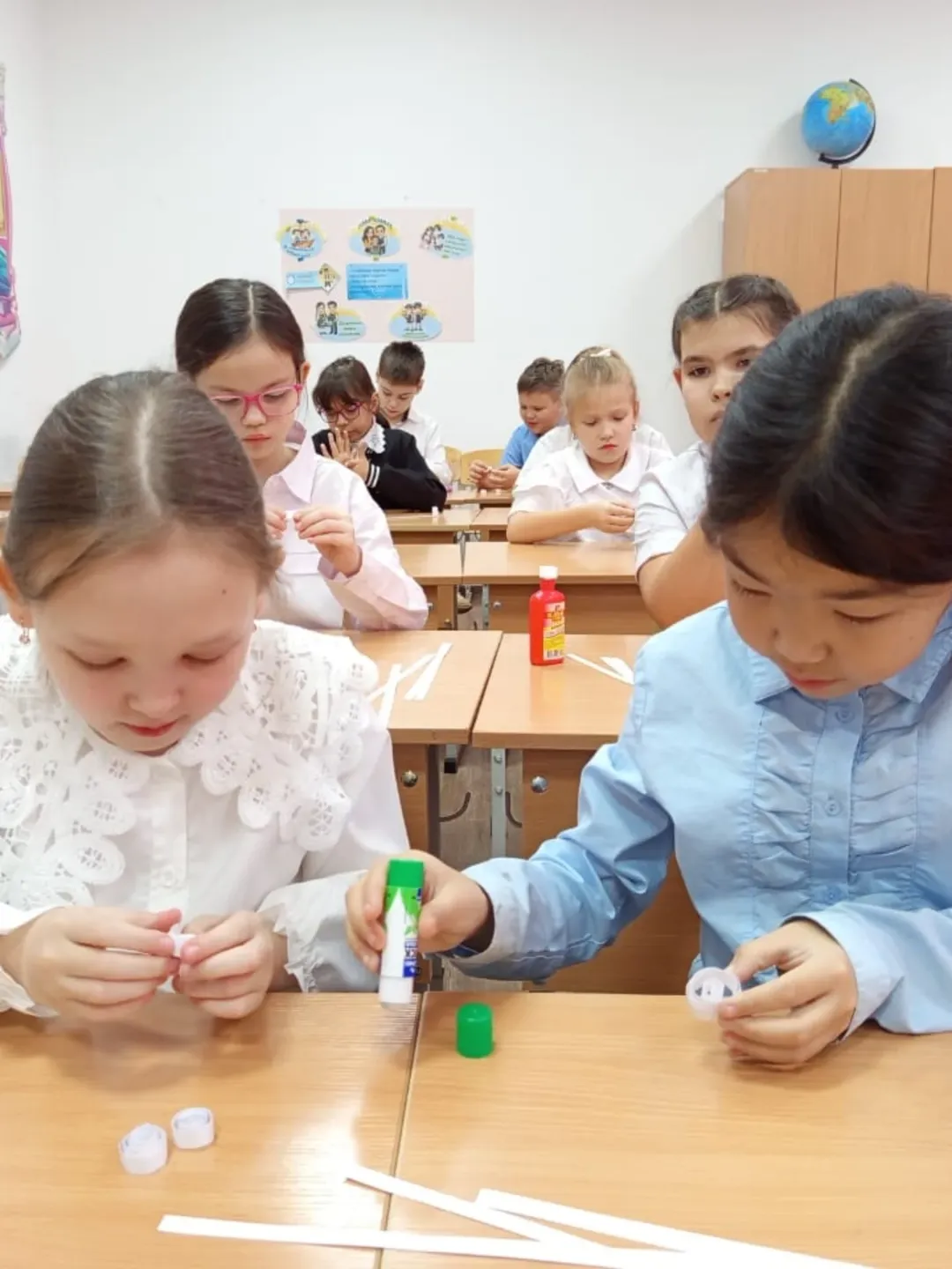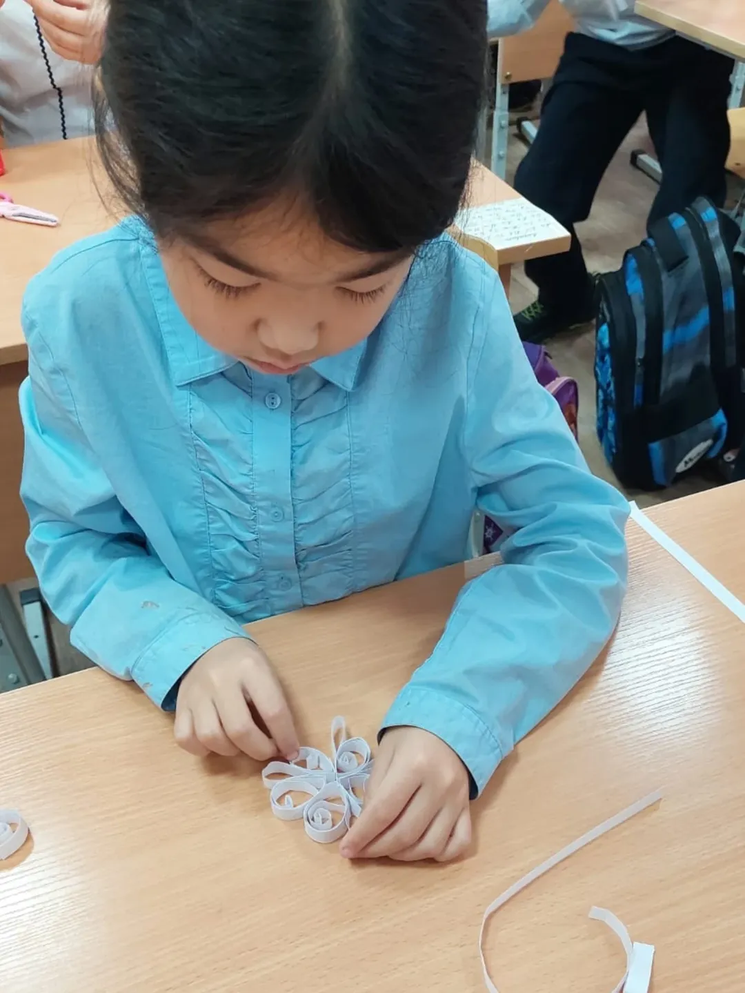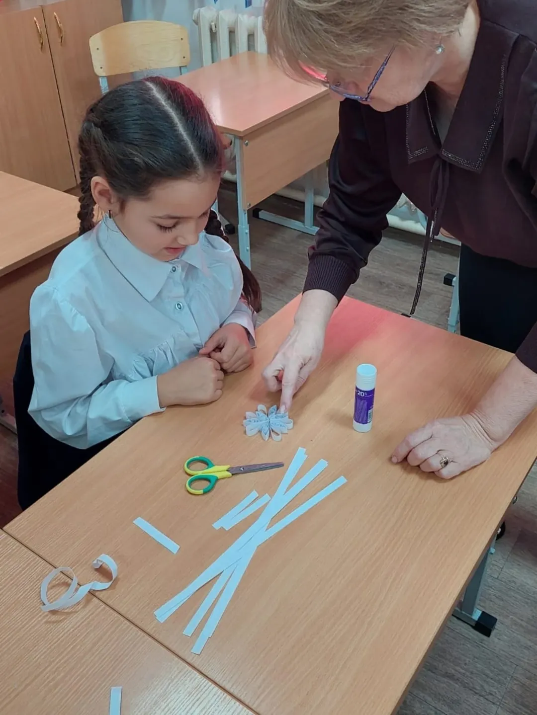 Учащиеся познакомилмсь с техникой квиллинга и её историей, учились выполнять базовые элементы квиллинга. При создании снежинки в данной технике проявили аккуратность и терпение, умение сотрудничать и помогать одноклассникам.