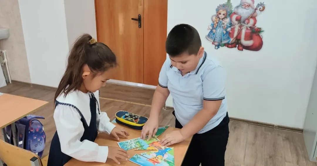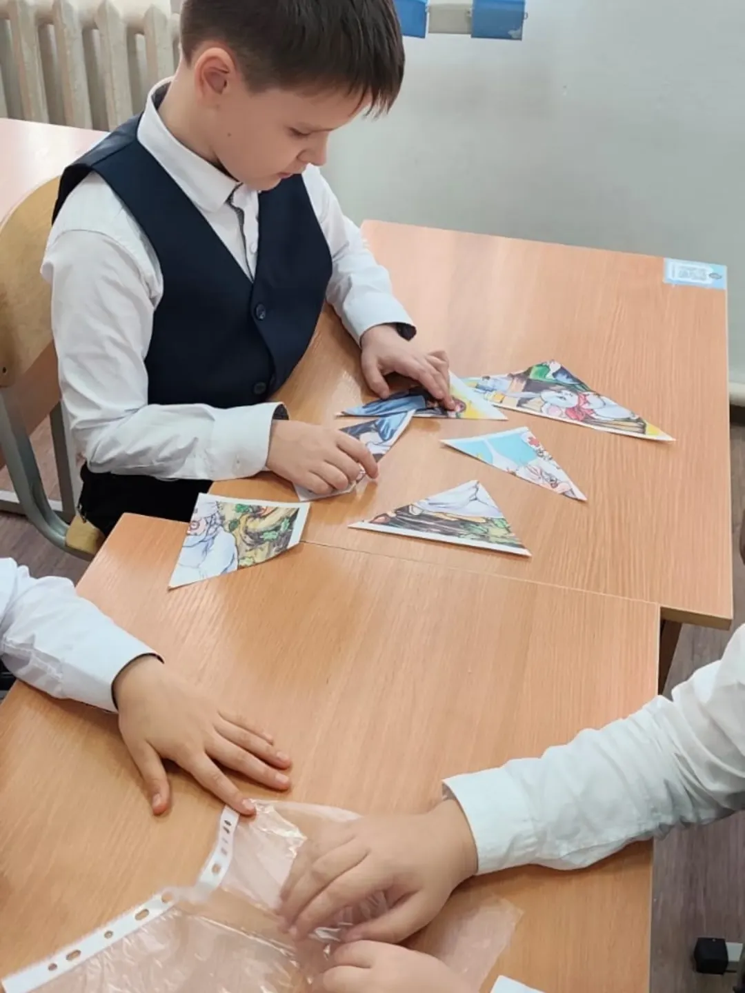 Учащимся было предложено собрать мозаику и назвать произведение. А также по аксессуарам определяли, героем какой сказки он является.